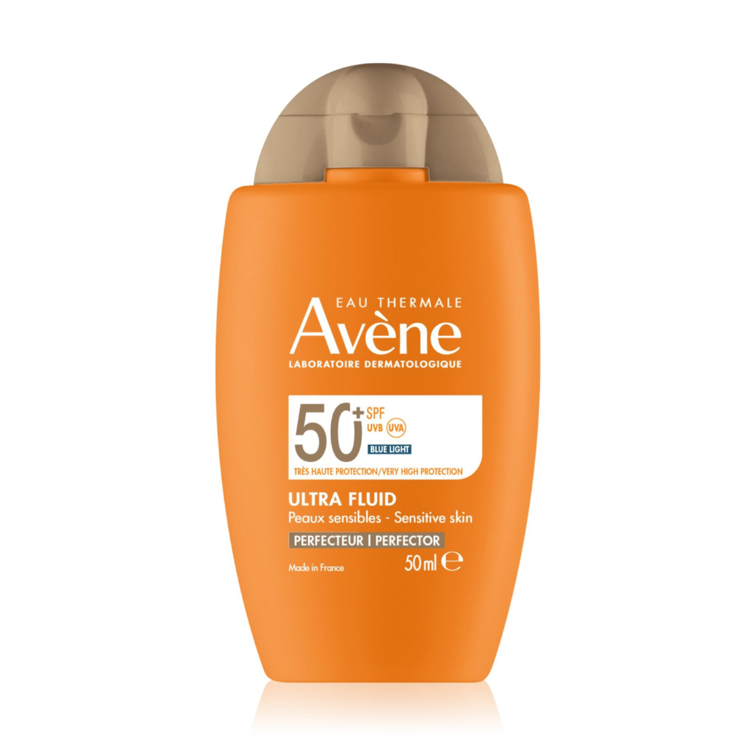 Avène Ultra Fluid Perfecteur Teinté SPF50+ 50ml est un soin solaire quotidien teinté pour le visage, idéal pour les peaux sensibles. Il combine très haute protection UVB/UVA et lumière bleue grâce au filtre breveté TriAsorB®. Sa texture ultra-légère au fini invisible affine le grain de peau, unifie le teint et offre une sensation peau nue immédiate. Formulé sans parfum, vegan et non comédogène, ce fluide teinté protège contre le photovieillissement et les agressions urbaines, tout en apportant un éclat naturel et matifiant. Convient parfaitement comme base de maquillage. 🌿 Bienfaits & Ingrédients clés Protège la peau des UVB, UVA et lumière bleue, tout en prévenant les taches et les signes du vieillissement. Apaise grâce à l’eau thermale d’Avène. Unifie le teint et matifie grâce aux pigments minéraux, amidon de riz et extrait de graines de lentille. Action antioxydante grâce à la vitamine E. 🧴 Conseils d’utilisation Appliquer généreusement avant l’exposition solaire, puis renouveler fréquemment, surtout après baignade ou transpiration. Éviter les expositions prolongées, notamment entre 11h et 16h. Ne pas exposer les enfants directement au soleil.