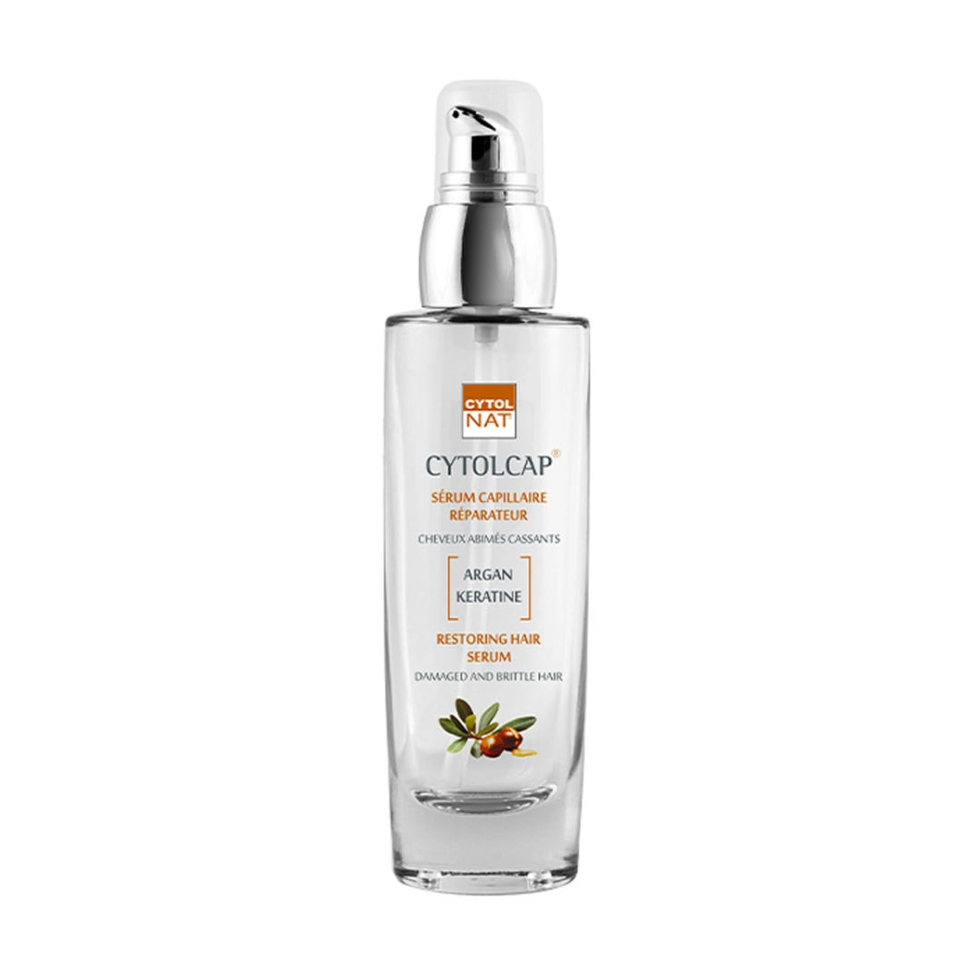 Sérum capillaire réparateur 50ml, enrichi en kératine végétale et huile d’argan pour renforcer, protéger et sublimer les cheveux abîmés. DESCRIPTION CYTOLCAP Sérum est un soin capillaire sans rinçage à base de kératine végétale et d’huile d’argan, idéal pour les cheveux cassants. Il nourrit intensément, renforce la fibre capillaire et protège contre les agressions quotidiennes. BIENFAITS & INGRÉDIENTS CLÉS – Kératine végétale : restructure et renforce le cheveu – Huile d’argan : riche en vitamine E, apporte brillance et douceur – Action anti-casse et anti-dessèchement, bouclier contre UV et chaleur CONSEILS D’UTILISATION Verser quelques gouttes dans la paume, chauffer entre les mains puis appliquer sur cheveux secs ou humides, en insistant sur les longueurs et pointes. Ne pas rincer.