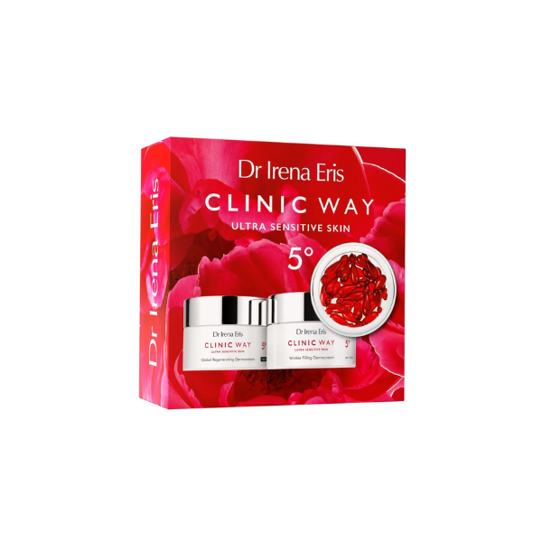 Coffret CLINIC WAY Ultra Sensitive Skin N°5 Le coffret anti-âge CLINIC WAY N°5 comprend des soins de prévention et de correction des rides. Il contient : CLINIC WAY Dermo-Capsules Revitalisantes : Ces capsules unidoses, contenant un sérum lipidique avancé, offrent une cure de 30 jours pour revitaliser les peaux fatiguées, sèches ou déshydratées, et prévenir les signes du vieillissement cutané. CLINIC WAY Dermocrème Anti-Rides de Jour SPF 20 : Cette crème hydrate et améliore la microstructure de l’épiderme, tout en luttant contre les rides. Elle stimule la maturation des cellules souches pour un lipo-comblement des rides profondes et redonne à la peau sa souplesse et élasticité naturelles. CLINIC WAY Dermocrème Anti-Rides de Nuit N°5 (Offerte) : Ce soin de nuit anti-rides intense renforce le remplissage lipidique et combat les processus responsables de la formation des rides. Il offre une régénération nocturne efficace pour une peau visiblement plus jeune.