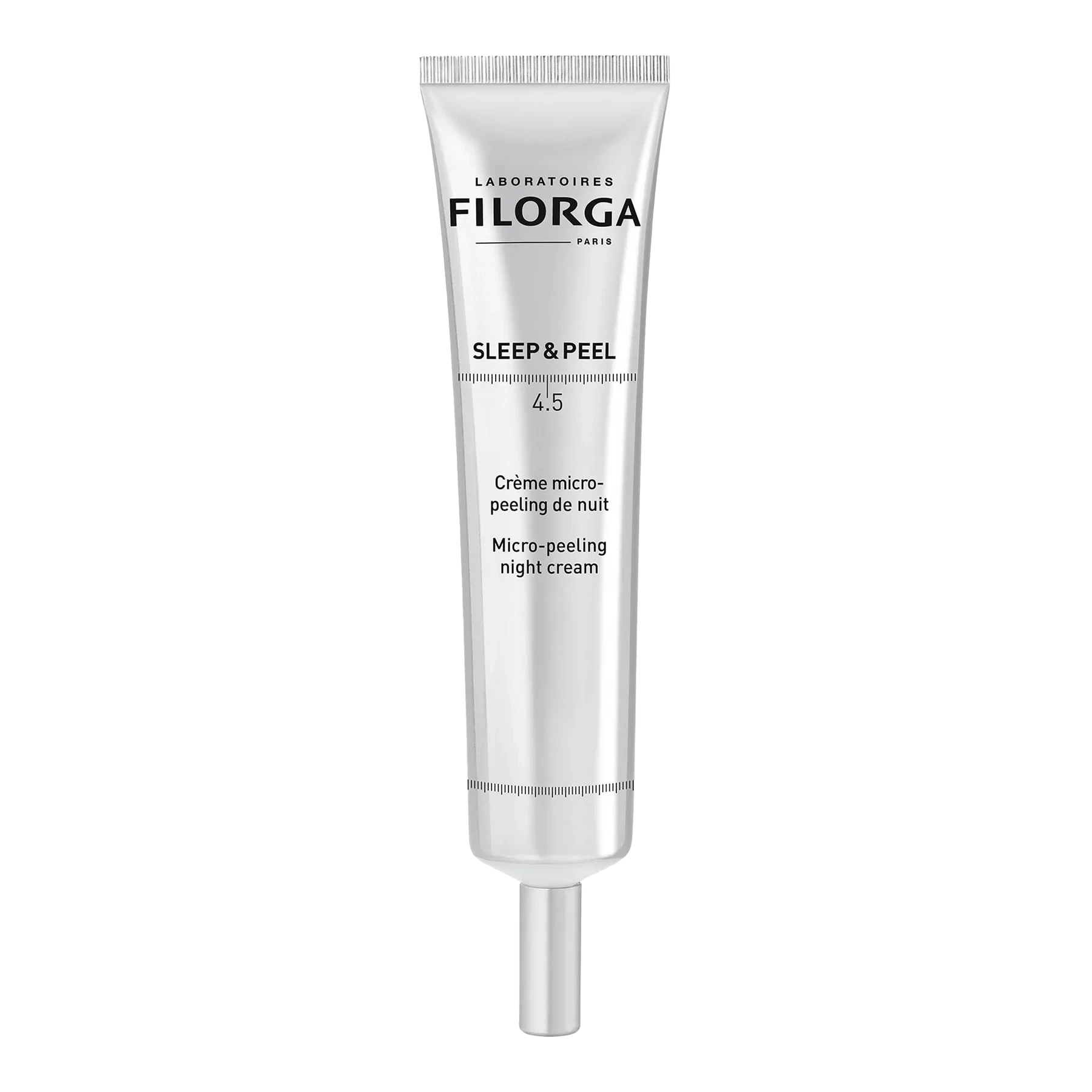 Crème micro-peeling de nuit Sleep & Peel 4.5 de 50ml pour une peau lissée et éclatante au réveil. DESCRIPTION Crème micro-peeling de nuit qui agit pendant le sommeil pour lisser et illuminer la peau. Réveil avec un teint éclatant et un grain de peau affiné. BIENFAITS & INGRÉDIENTS CLÉS – Micro-peeling doux pendant le sommeil – Lisse, illumine et affine le grain de peau – Réveil avec un teint éclatant et unifié CONSEILS D’UTILISATION Appliquer le soir sur visage propre en remplacement de la crème de nuit. Commencer par 2-3 applications par semaine. Toujours utiliser une protection solaire le matin.