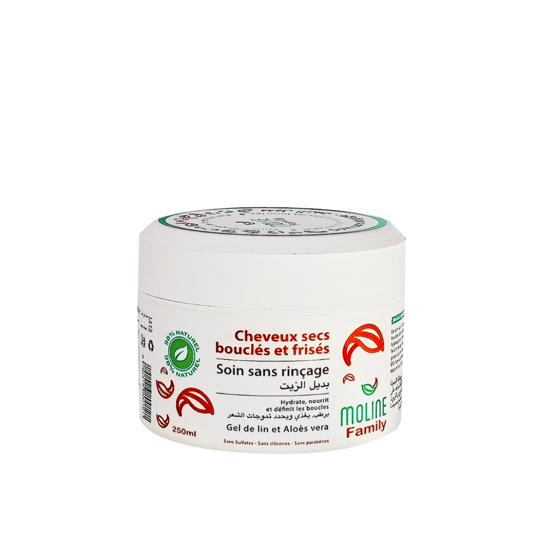 Soin capillaire 250ml sans rinçage, enrichi en huiles naturelles, gel de lin et Aloe Vera bio, idĂ©al pour dĂ©finir les boucles, hydrater et discipliner les cheveux Ă©pais et bouclĂ©s. DESCRIPTION Le soin sans rinçage Moline Family hydrate, dĂ©finit les boucles et dompte les frisottis grâce Ă une synergie d’huiles vĂ©gĂ©tales, d’Aloe Vera bio et de gel de lin. BIENFAITS & INGRÉDIENTS CLÉS – Huile d’avocat, ricin, amande douce : nutrition intense – Gel de lin & Aloe Vera bio : brillance et hydratation – Facilite le dĂ©mĂŞlage, discipline les frisottis, idĂ©al cheveux bouclĂ©s CONSEILS D’UTILISATION Appliquer sur cheveux propres et humides, rĂ©partir uniformĂ©ment mèche par mèche. Ne pas rincer. Coiffer comme dĂ©sirĂ©. Usage quotidien.