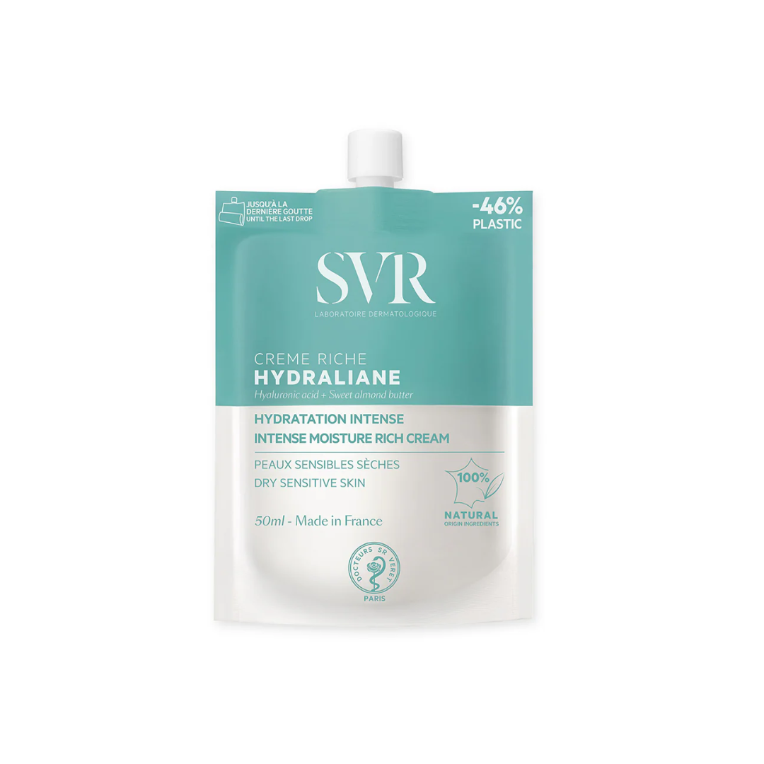 SVR Hydraliane Riche 50ml Pour toutes les peaux sèches à très sèches même sensibles, de toute la famille.L’indispensable pour les peaux déshydratées, inconfortables, qui tiraillent. Douce et confortable, Hydraliane Crème Riche est la solution hydratante quotidienne 100% d’origine naturelle pour nourrir, apaiser et hydrater intensément et durablement pendant 24h. Les signes de sécheresses sont réduits, la peau retrouve son confort et sa souplesse. Une texture riche, fondante enveloppe la peau et la protège. Non grasse et non collante, elle ne laisse pas de fini brillant sur la peau. Un parfum floral et addictif faisant de l’application du soin un véritable moment de plaisir. Conseils d’utilisation: Appliquer matin et/ou soir sur une peau propre et sèche. Notre conseil : appliquer après avoir bien nettoyé votre peau avec notre Gel Moussant Physiopure. Bonne base de maquillage, fini velouté, non gras-non collant. Qualités et caractéristiques environnementales : Emballage entièrement recyclable.