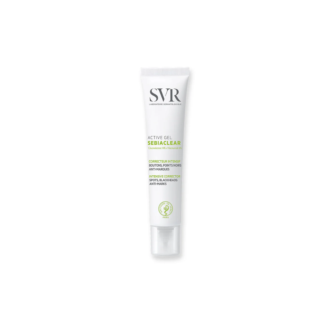 SEBIACLEAR Active Gel 40ml [ Nouvelle formule correction globale. Elimine les imperfections dès 7 jours. Correcteur intensif boutons, points noirs, anti-marques SEBIACLEAR ACTIVE GEL offre une formule super concentrĂ©e en actifs dermatologiques pour des rĂ©sultats visibles sur les imperfections dès 7 jours. Les boutons et points noirs sont rĂ©duits, la qualitĂ© de la peau est nettement amĂ©liorĂ©e, les brillances rĂ©duites et les marques rouges ou brunes corrigĂ©es. Sa nouvelle texture gel-crème ultra confortable hydrate la peau et apaise les inconforts sans laisser de film gras. Sans traces blanches, ni peluches, elle pĂ©nètre très rapidement. Appliquer sur l’ensemble du visage sur peau propre matin et soir.Â
