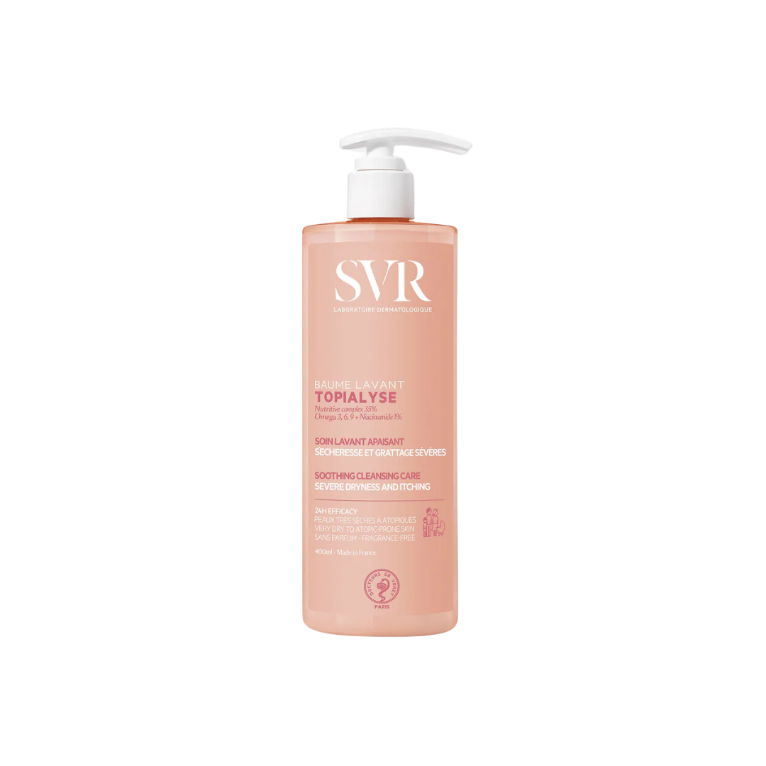 TOPIALYSE Baume Lavant l Soin lavant apaisant sĂ©cheresse et grattage sĂ©vères – peaux très sèches Ă  atopiques. Dès la naissance. Corps, visage, cheveux, hygiène intime. Ne pique pas les yeux. TOPIALYSE BAUME LAVANT est un soin lavant sans parfum sans sulfate. Il apaise les sensations de grattage et relipide la peau pour restaurer la barrière cutanĂ©e. Sa texture baume est crĂ©meuse, onctueuse pour un vrai moment de douceur pour ces peaux fragiles. Dès la sortie du bain/douche, la peau est plus confortable. UNE EFFICACITÉ CLINIQUEMENT PROUVÉEMaintient l’hydratation pendant 24h100% respectueux et testĂ© des peaux très sèches Ă  atopiques Usage quotidien. Appliquer sur peau mouillĂ©e, faire mousser, rincer puis sĂ©cher dĂ©licatement sans frotter. Corps, visage, hygiène intime. Convient aux cheveux et au corps du bĂ©bĂ©, ne pique pas les yeux.